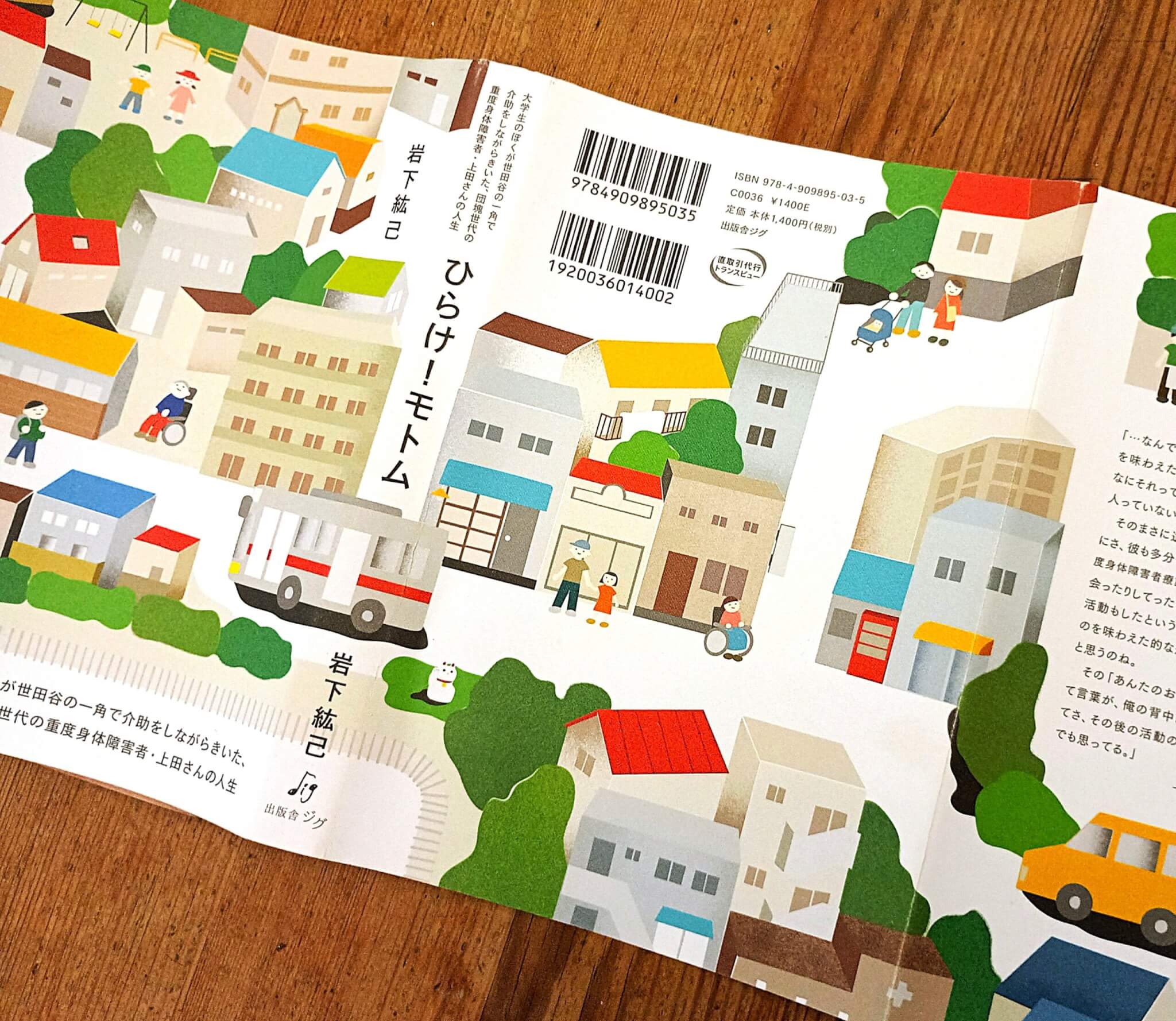 (いろんな人がいろいろいる町、それをつないでいるかもしれない道やバス。デザイナー/イラストレーターさんといろいろ相談したブックカバー。バスはぜひとも真ん中に配置!)